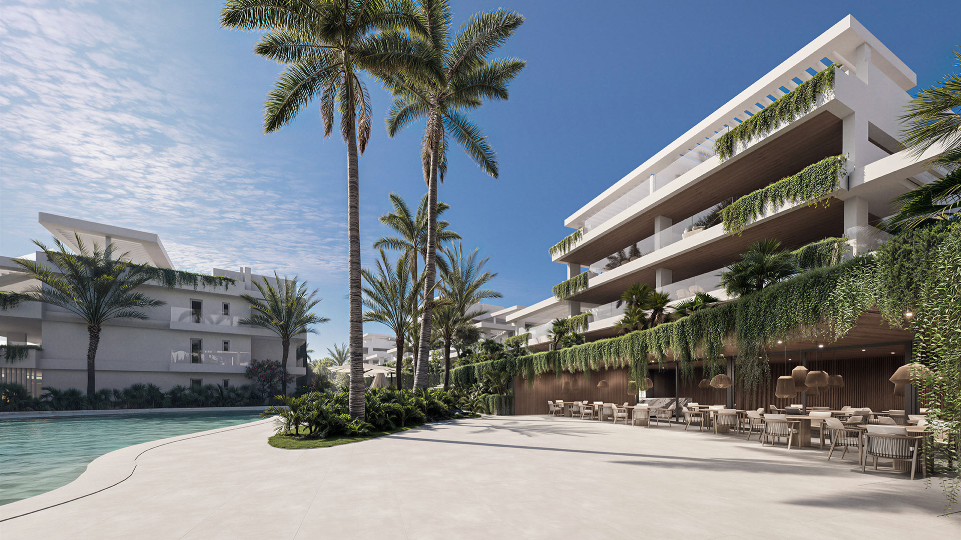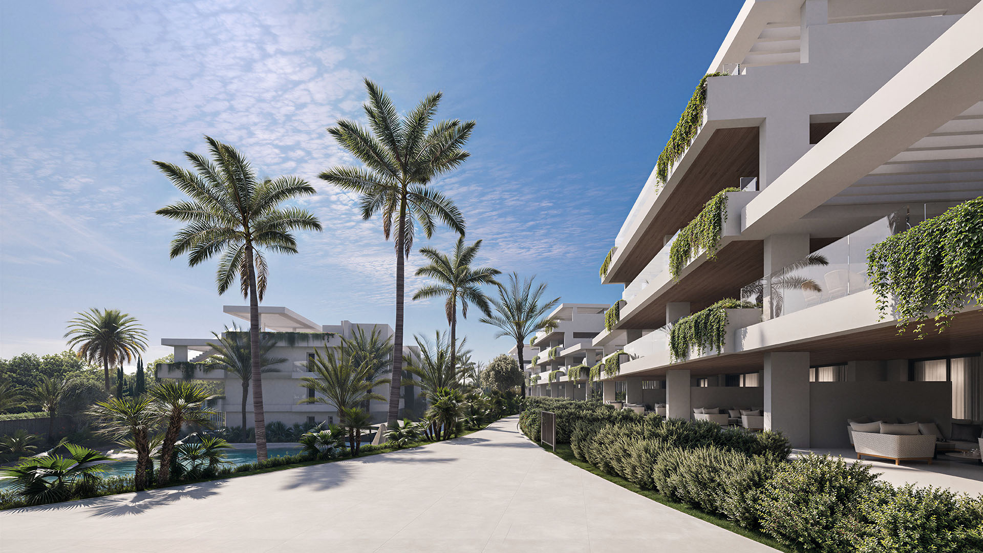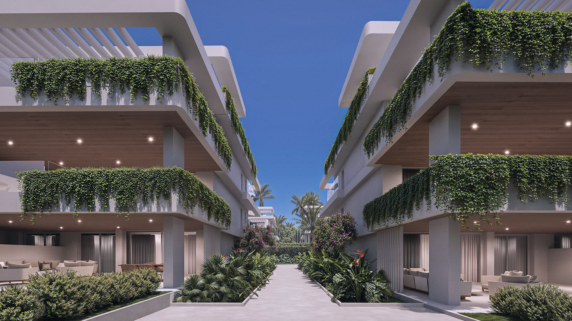 Het aanbod bestaat uit diverse woningtypes, waaronder benedenwoningen met privé tuinen, appartementen op de eerste verdieping met ruime terrassen en luxueuze duplex-penthouses met zonneterrassen en panoramisch uitzicht op zee. Het interieur, verzorgd door Gunni & Trentino, straalt tijdloze elegantie uit met hoge plafonds, vloerverwarming, en volledig uitgeruste keukens en badkamers. Elke woning beschikt bovendien over een eigen parkeerplaats en berging.