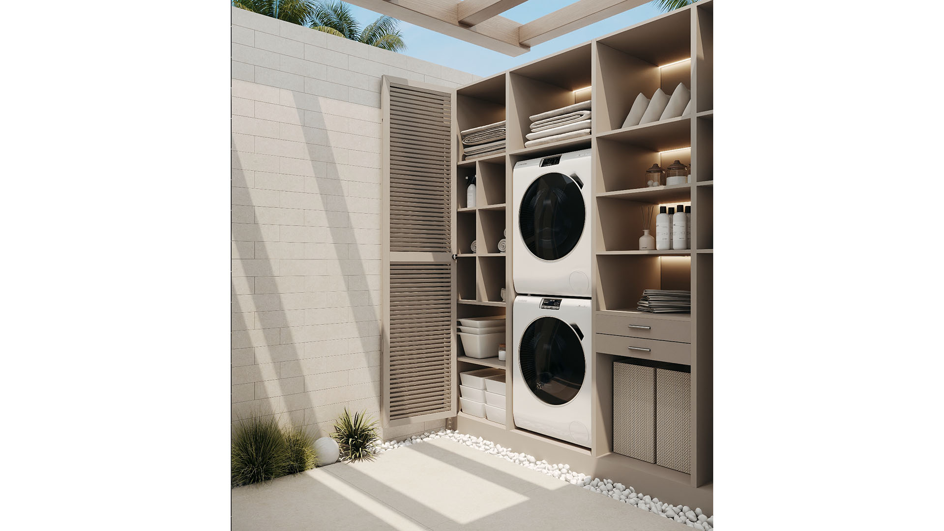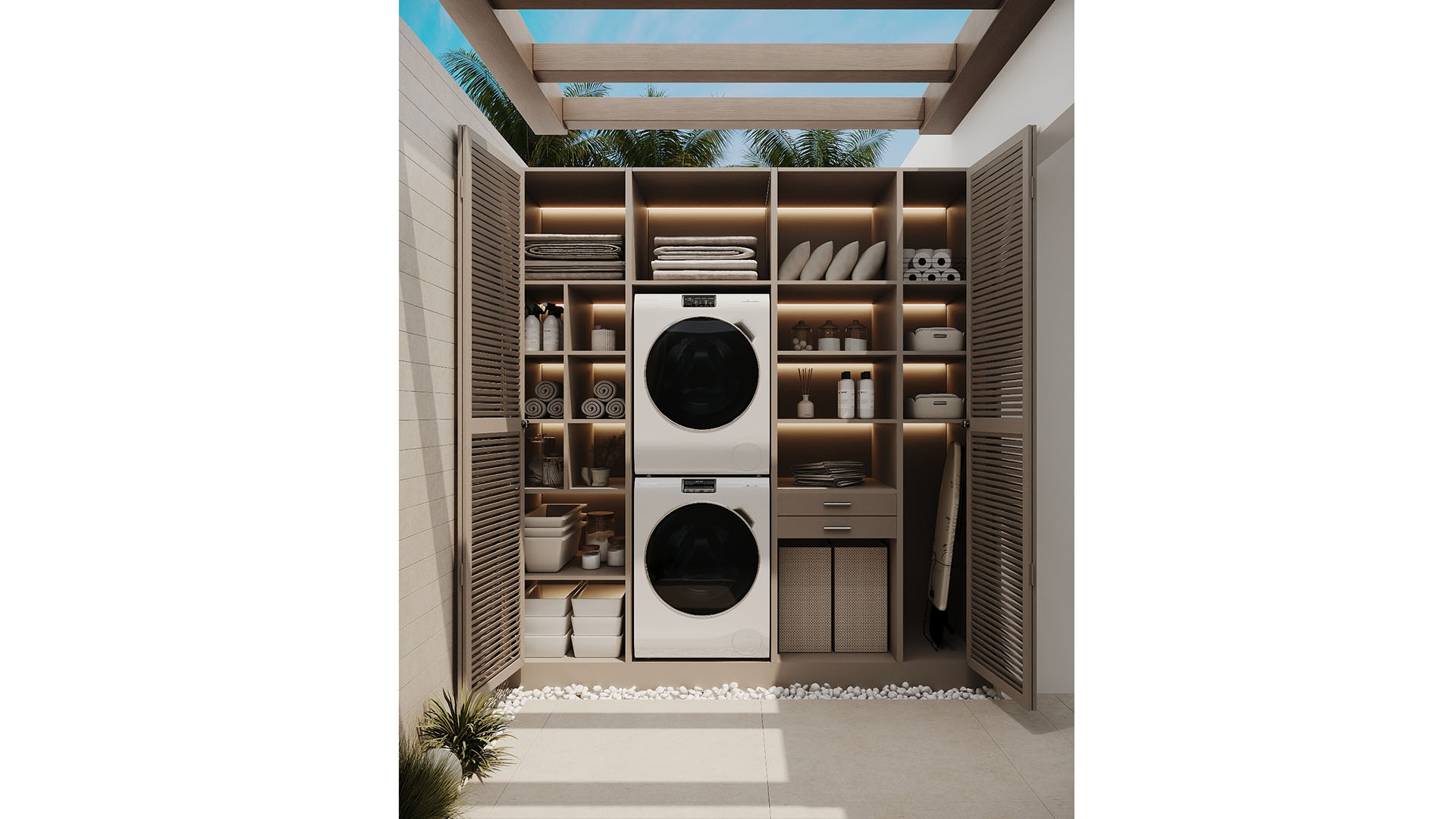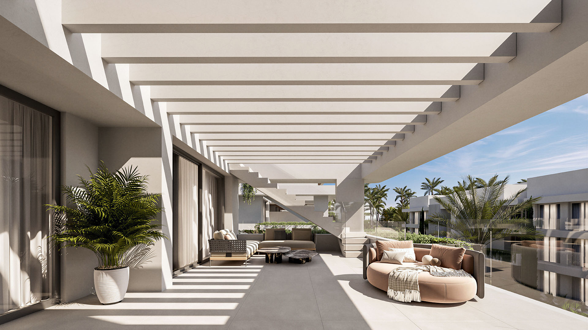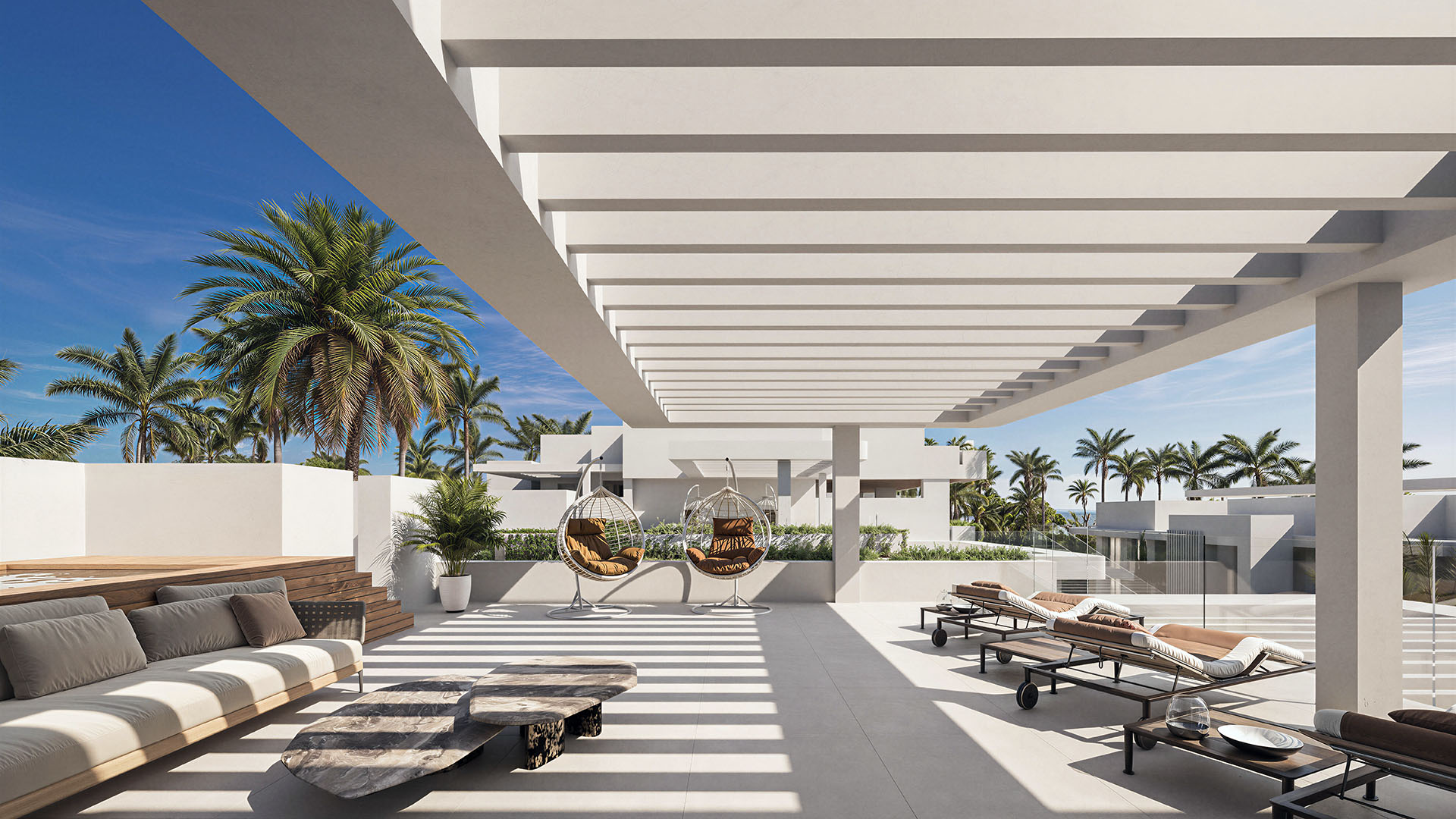 Het aanbod bestaat uit diverse woningtypes, waaronder benedenwoningen met privé tuinen, appartementen op de eerste verdieping met ruime terrassen en luxueuze duplex-penthouses met zonneterrassen en panoramisch uitzicht op zee. Het interieur, verzorgd door Gunni & Trentino, straalt tijdloze elegantie uit met hoge plafonds, vloerverwarming, en volledig uitgeruste keukens en badkamers. Elke woning beschikt bovendien over een eigen parkeerplaats en berging.