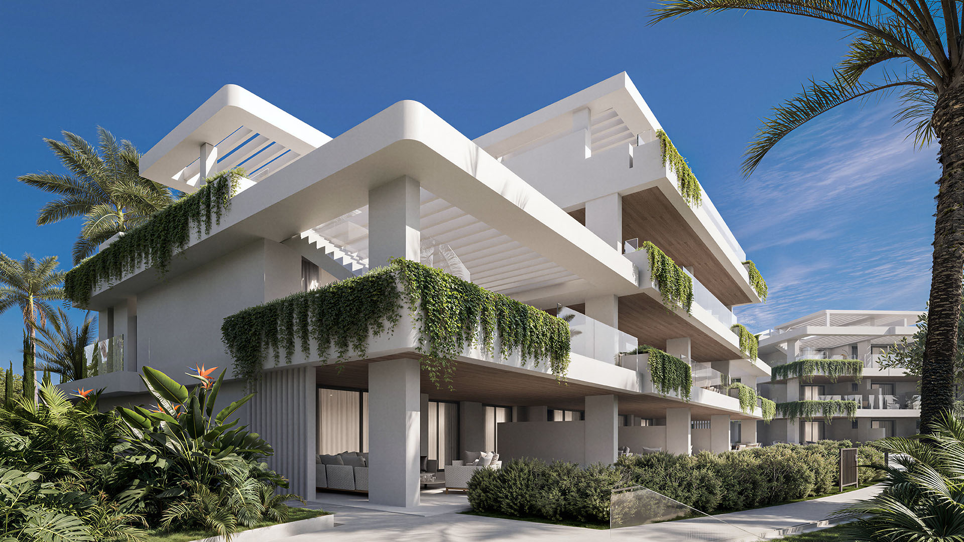Welkom bij dit nieuwbouw appartement te koop in Estepona. Het maak deel uit van een exclusieve residentieel ontwikkeling Almina Residences, ontworpen door de gerenommeerde architect Juan Antonio Fernández. Het project is strategisch gelegen in het hart van Estepona, op korte afstand van Puerto Banús, Marbella, en wordt omringd door prestigieuze golfbanen, stranden en essentiële voorzieningen zoals internationale scholen en winkels centra. De architectuur en het stedenbouwkundig ontwerp zijn erop gericht om bewoners nauw in contact te brengen met de natuur door middel van groene zones en wandelpaden, wat zorgt voor een vloeiende overgang tussen privé en gedeelde ruimtes.